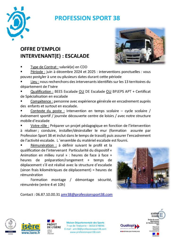 Intervenant escalade en temps scolaire – Profession Sport 38
